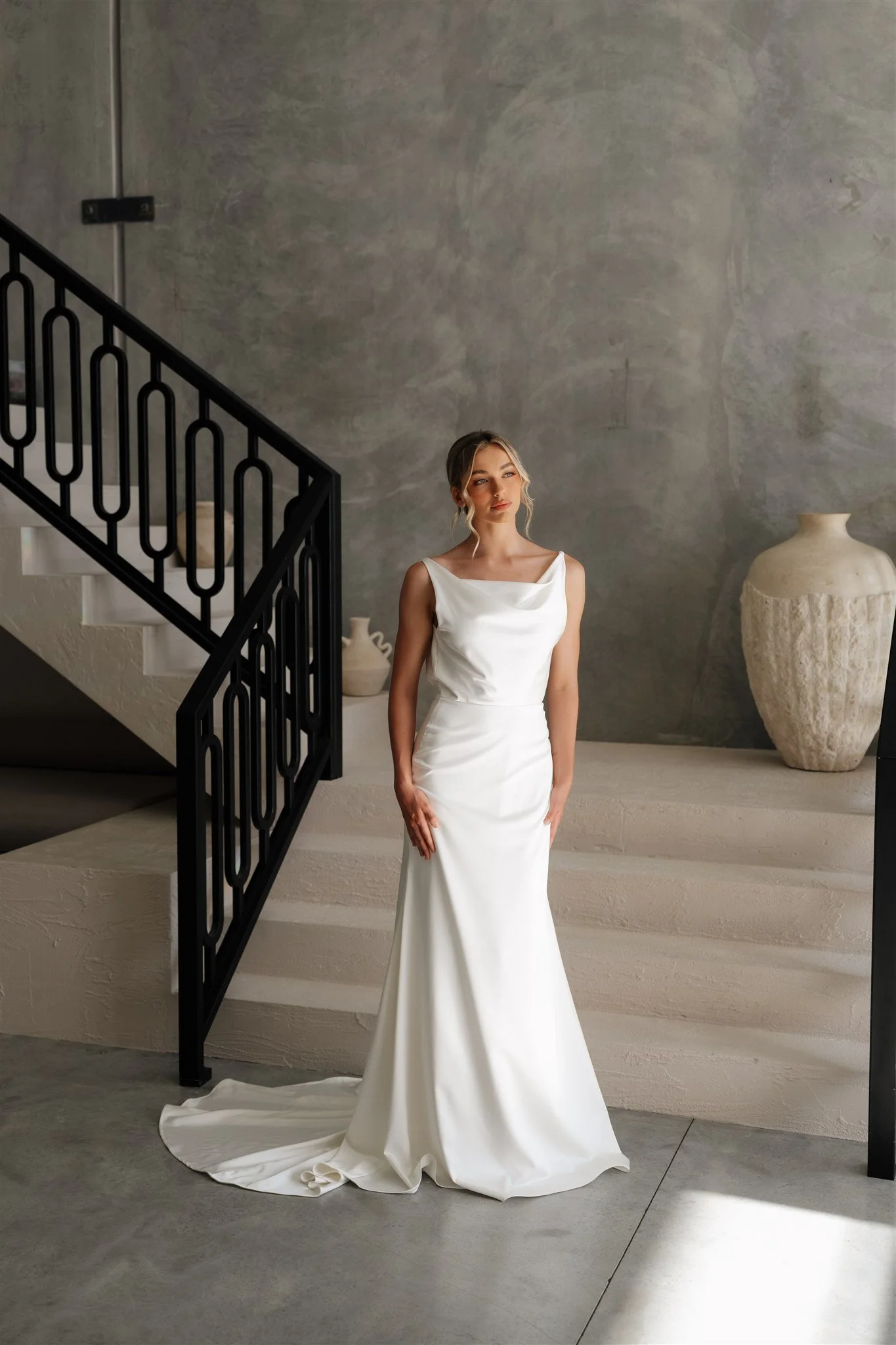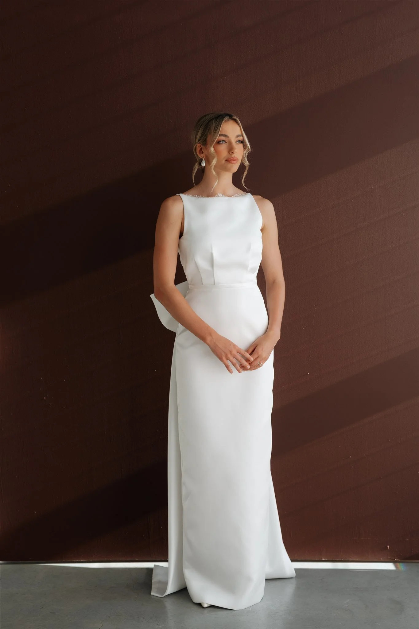 A stunning choice for brides seeking a timeless yet modern satin wedding gown.